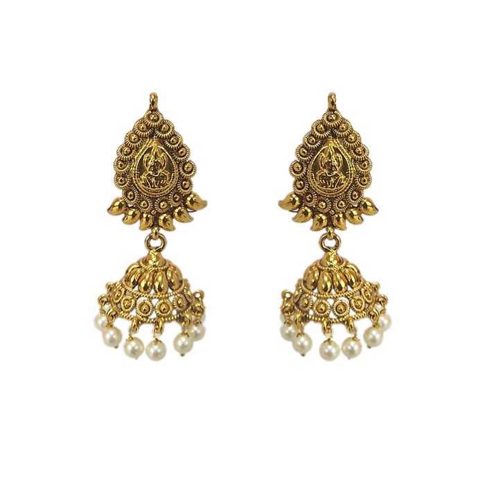 Gold plated Jhumka lakshmi design with white pearls