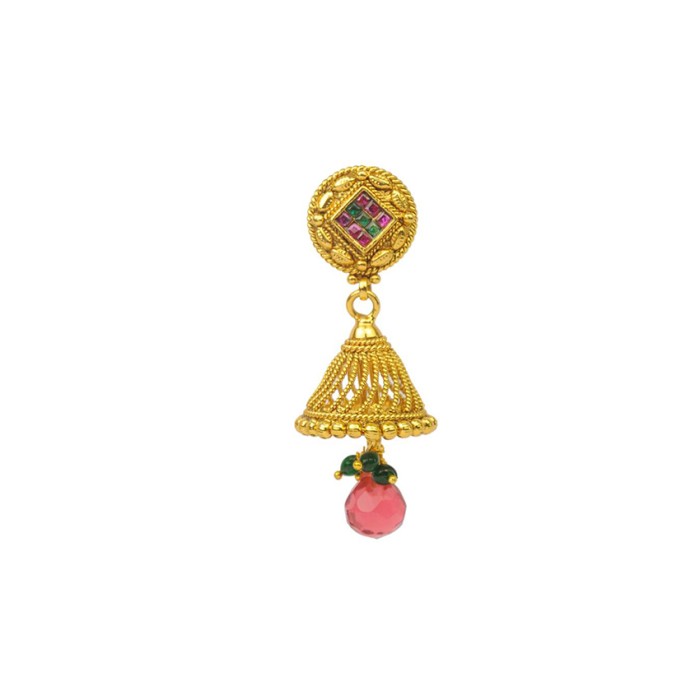 Gold Plated Jhumka With Diamond Red & Green Stone