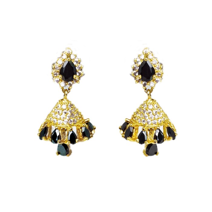 | Product Code: | Gold plated with black and white stone Jhumkas120 |