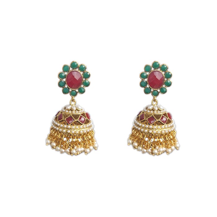 Gold plated with red & green stone with white pearls