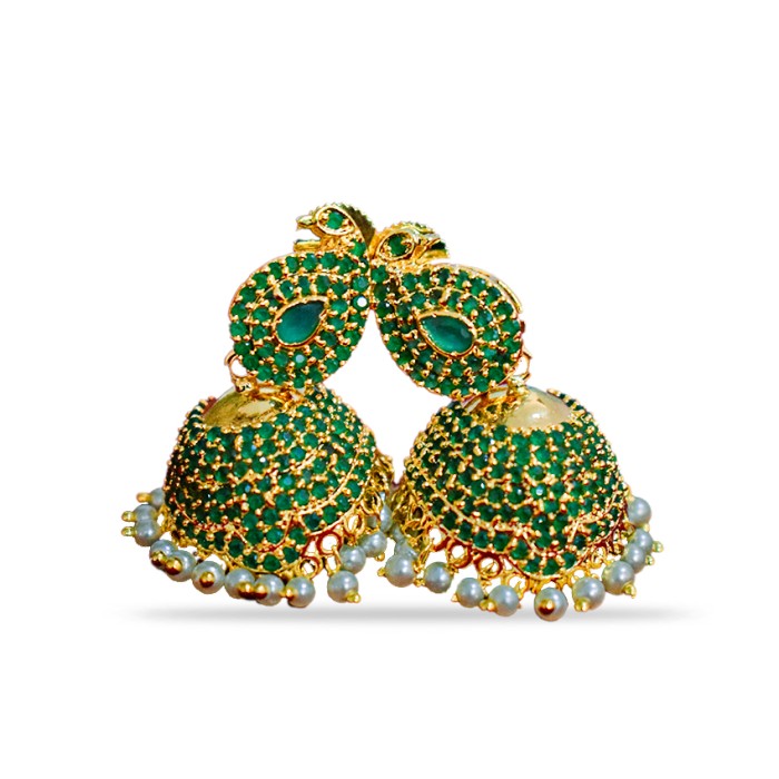 Jhumkas with green and white pearls