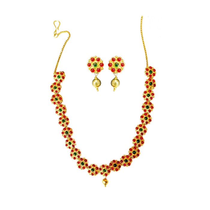| Product Code: | Gold plated necklace flower design red stone gold bead 90 |