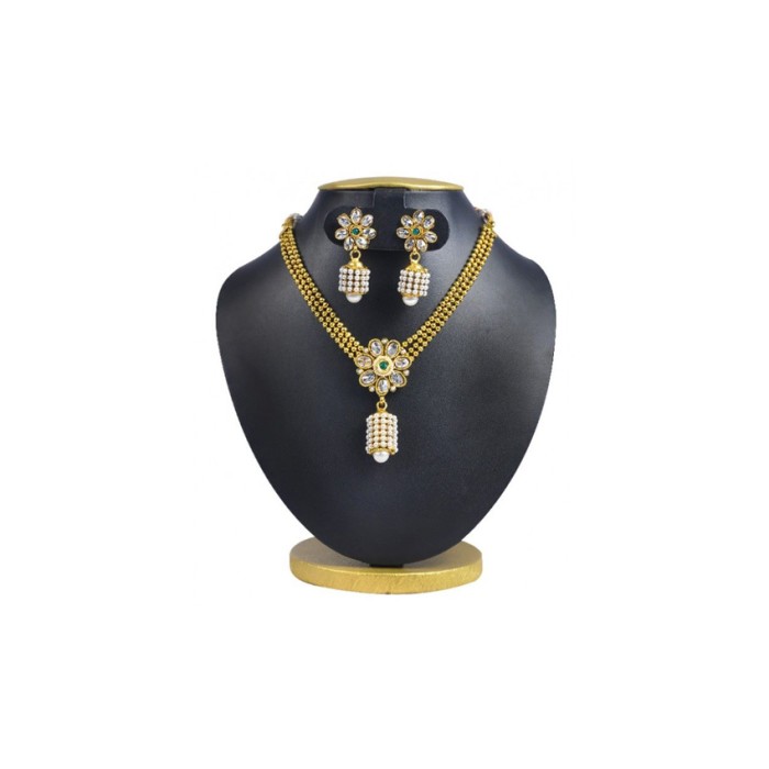 This gold plated Necklace set will will add bling to your look, these gorgeous jewellery set goes on with any ethnic and traditional outfit adds a ethereal touch to your attire for a pretty look. A perfect masterpiece for any given occasion