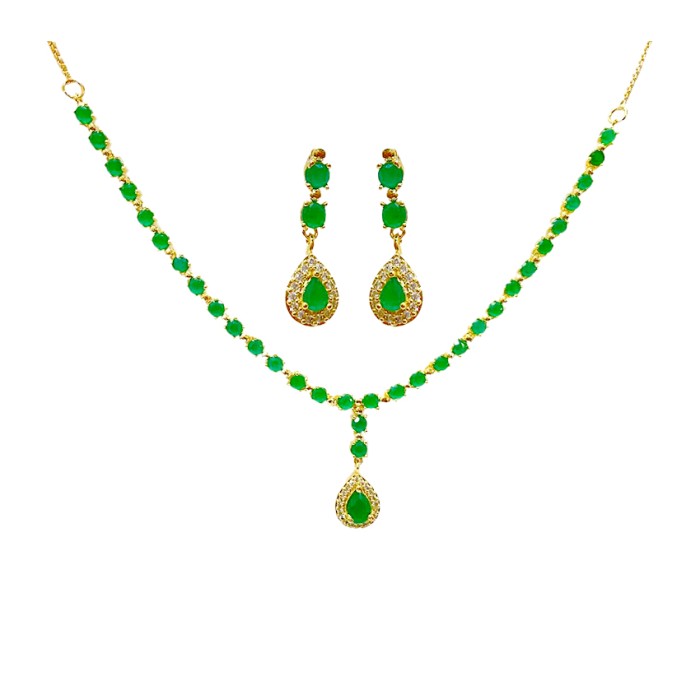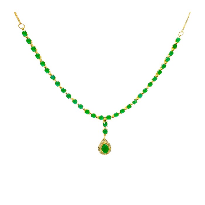 Gold Plated Necklace With Small Green Stones