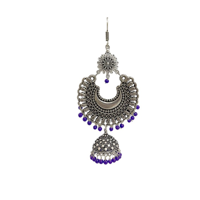 Oxidised big round jhumkas with blue beads