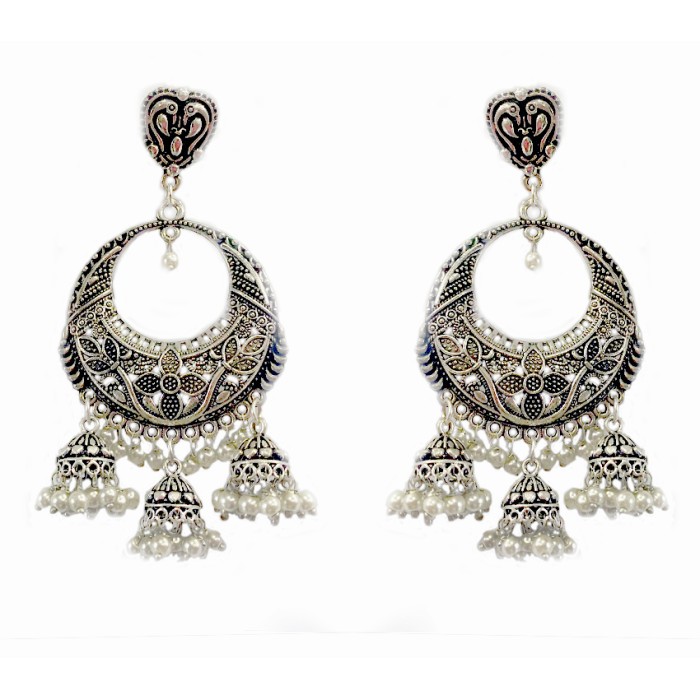 Oxidised classic jhumkas with white pearls