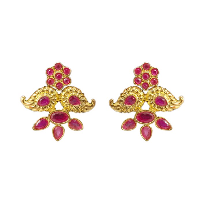 Gold plated stud double maanga design with pink stone