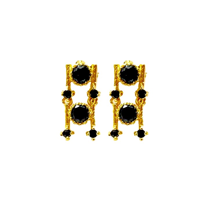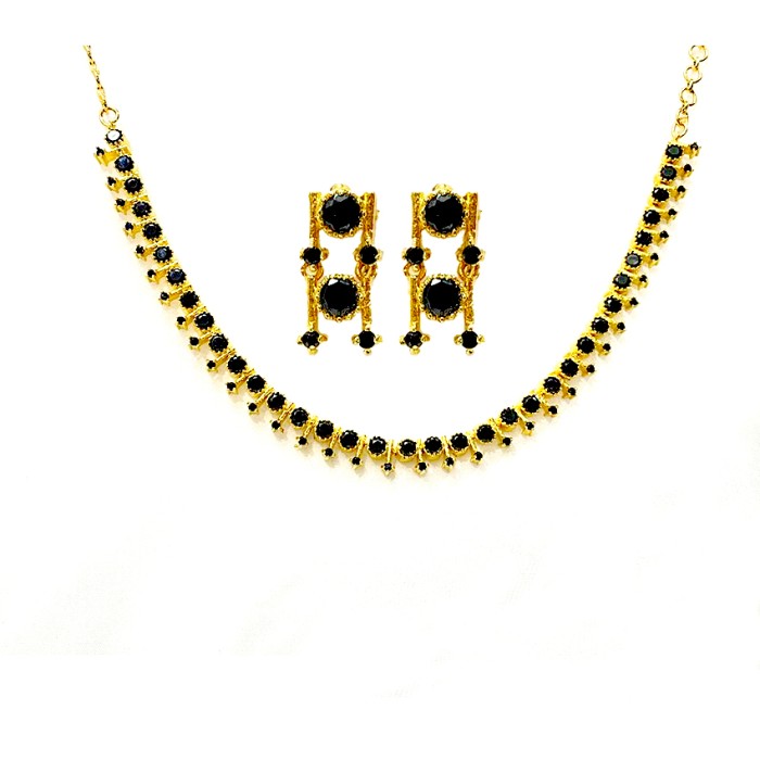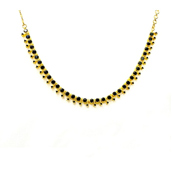 Gold Plated Round Necklace With Black Stones