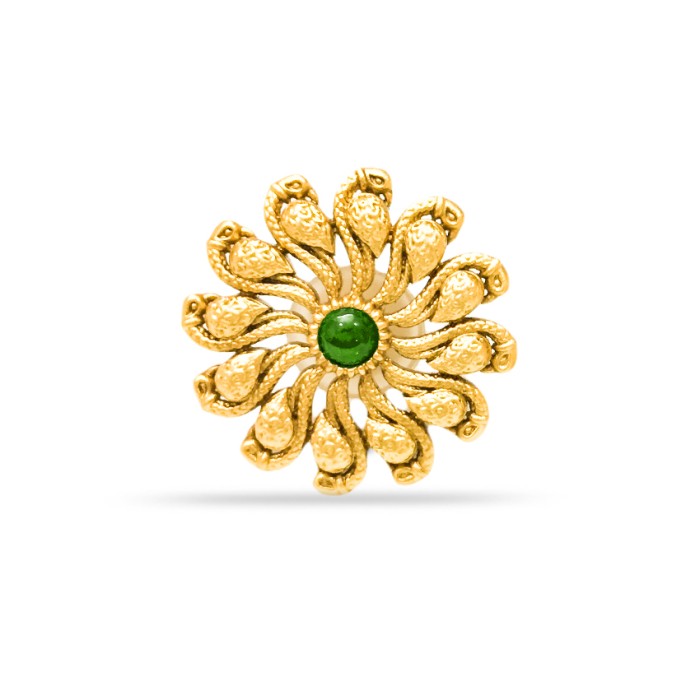 Gold Plated Studs With Green Stone And Flower Design