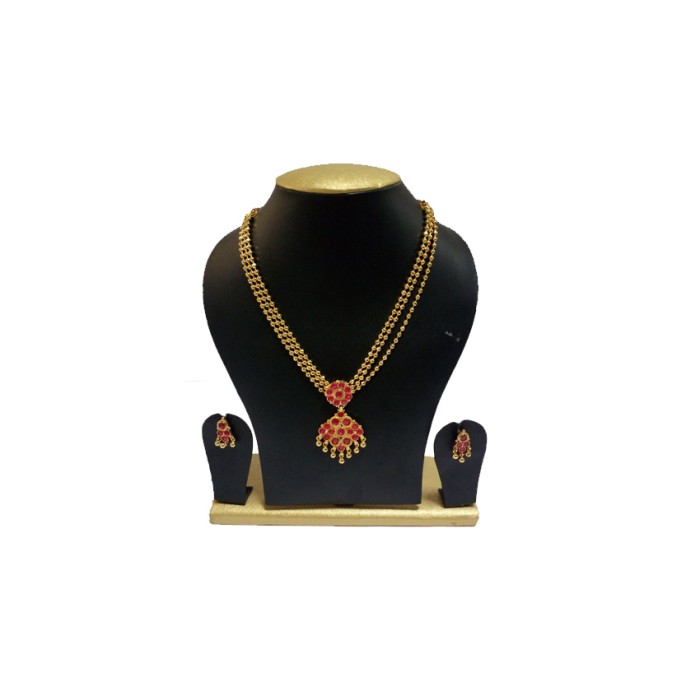 Product Code:Gold Plated Chain Necklace With Pink Stones & Beads 220