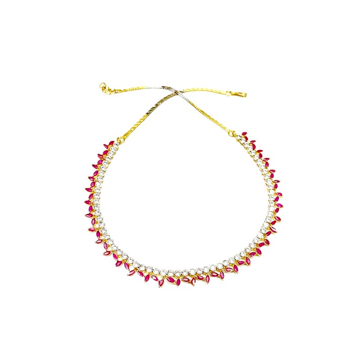 Gold Plated Necklace With Small Pink White Stones