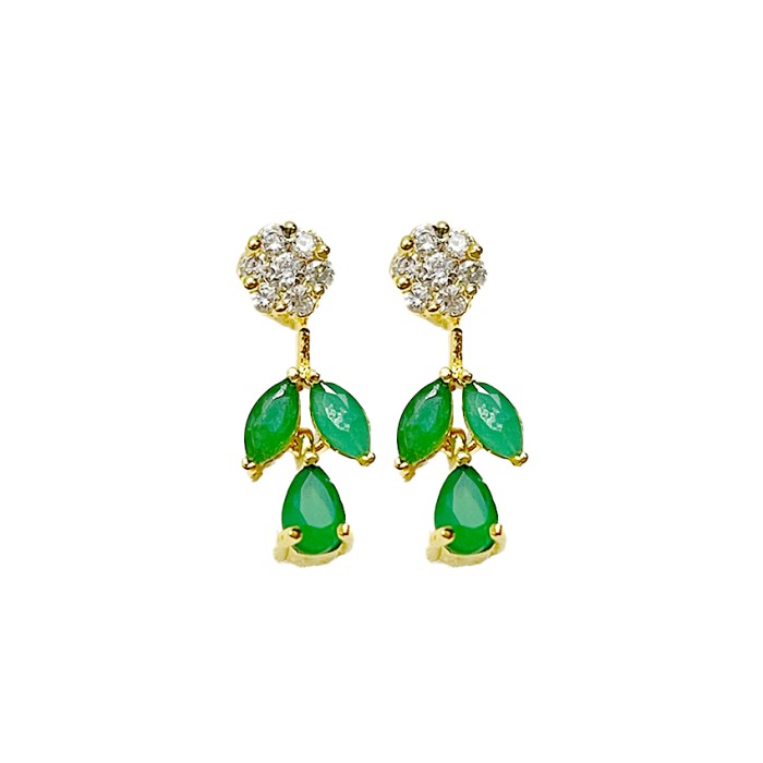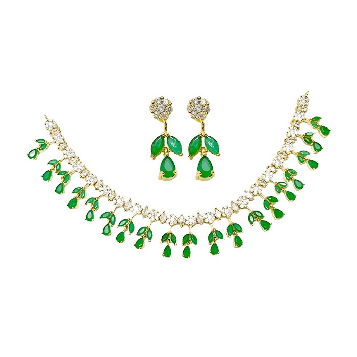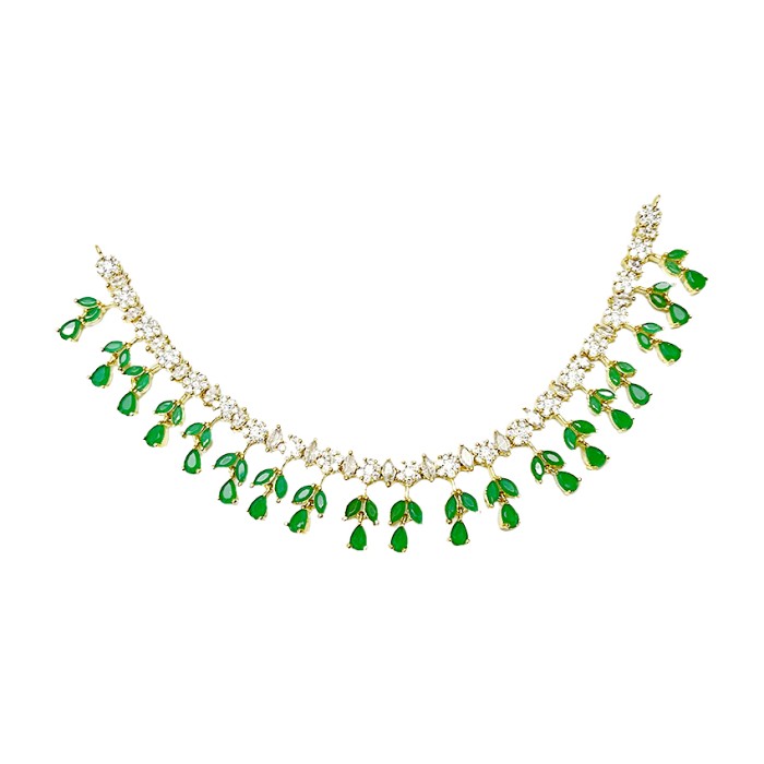 Gold Plated Necklace With White & Green Stones