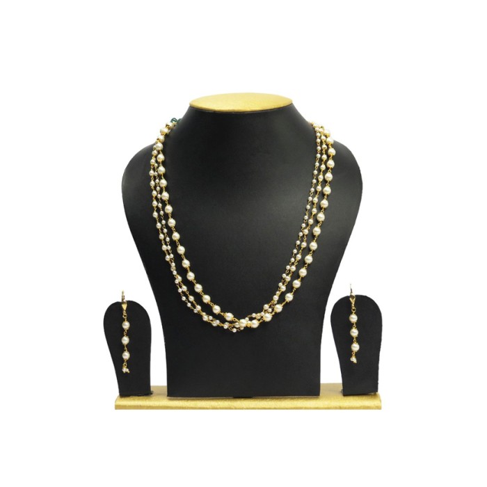 This gold plated Necklace set will will add bling to your look, these gorgeous jewelry set goes on with any ethnic and traditional outfit adds a ethereal touch to your attire for a pretty look. A perfect masterpiece for any given occasion