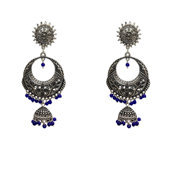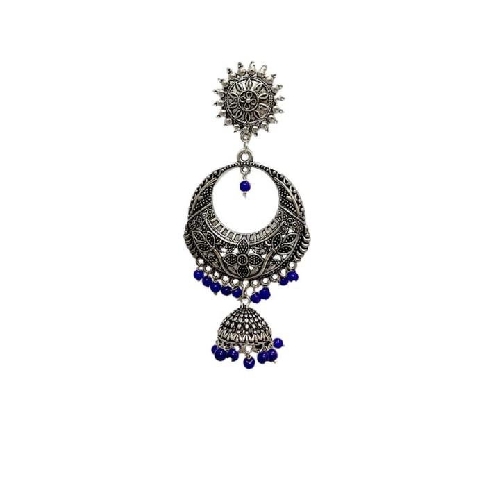 Oxidised round jhumkas with blue beads