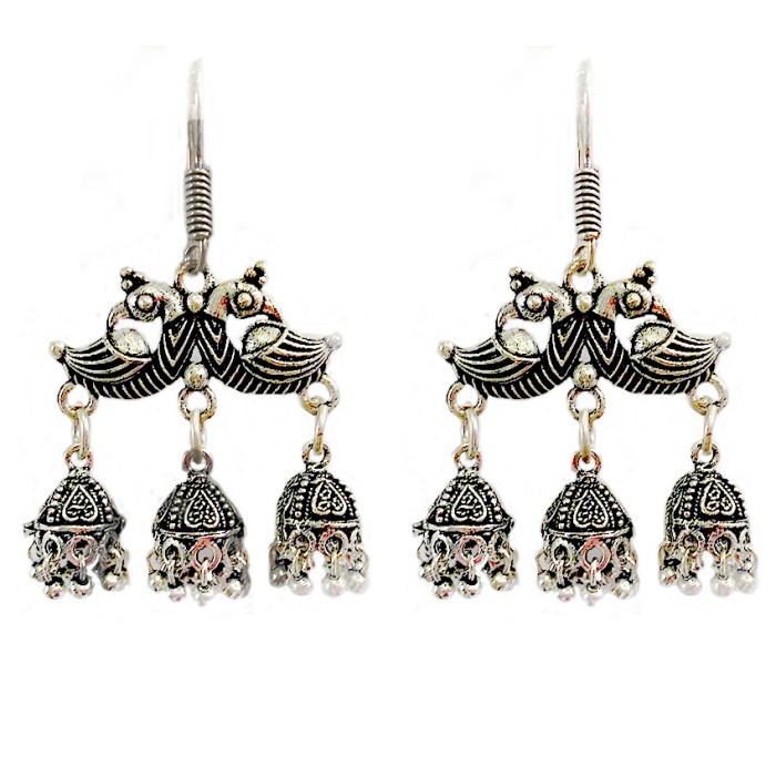 Oxidised Jhumkas with double parrot design
