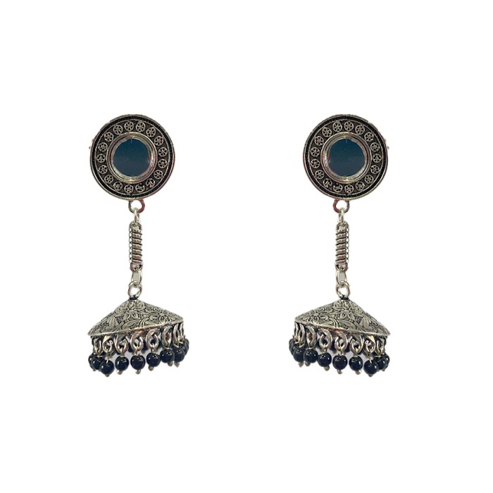 Oxidised jhumkas with black beads