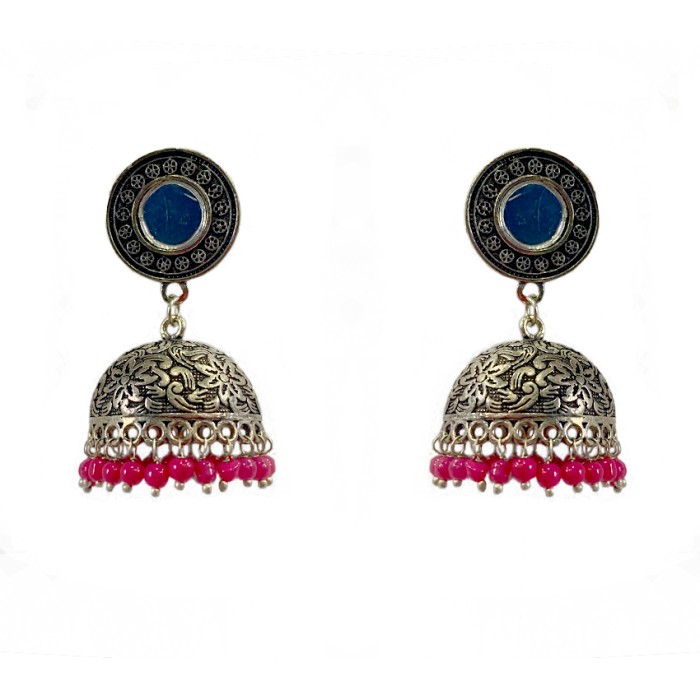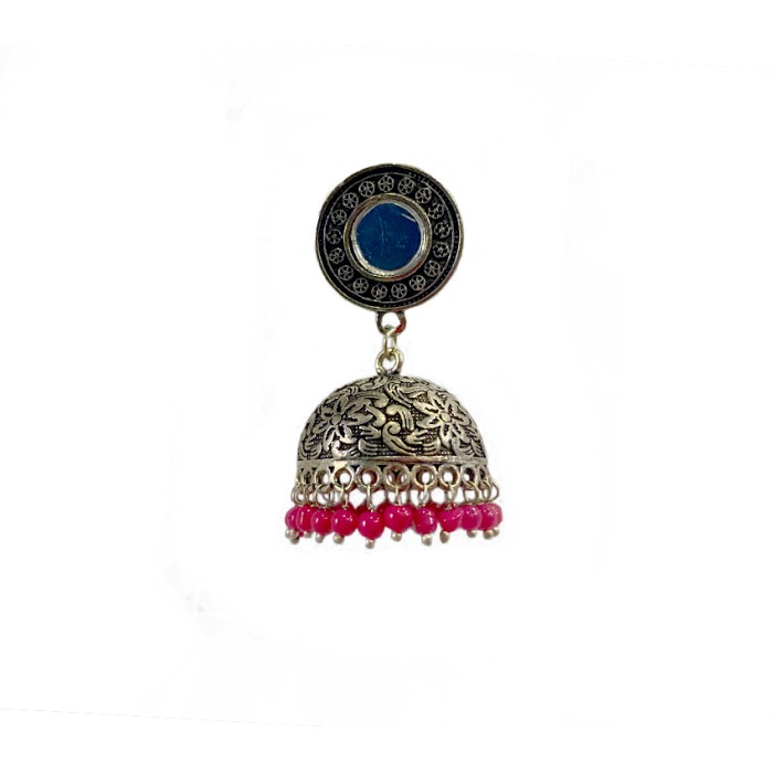 Oxidised jhumkas with pink beads